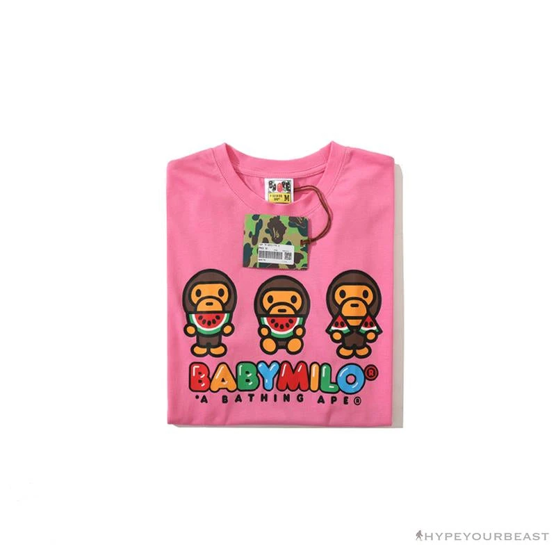 BAPE Baby Milo Watermelon Little Monkey Tee Shirt ‘PINK’